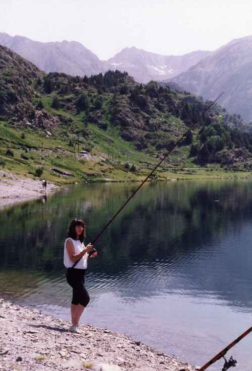 une "pêcheuse",au cinquième mois de grossesse,au lac du passet