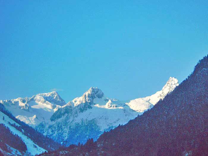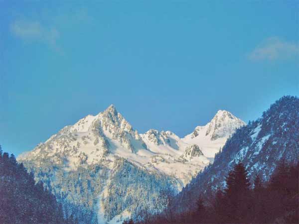 la neige est encore bien présente sur les sommets(le soleil aussi)