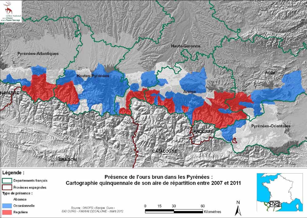 Sur l'ensemble du massif des Pyrénées, l'effectif est estimé à 19 ours minimum, dont 17 repérés sur le versant français.