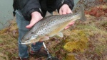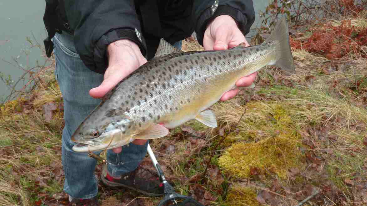 Voici un exemplaire de truite capturée sur une retenue d'eau pile à la frontière franco espagnole, à 750m d'altitude.
