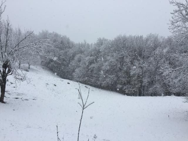 Le matin, ouverture des volets et là, p... de moine, pas de neige sur les versants, pas de limite pluie-neige visible, je lève les yeux rien même aux plus proches sommets (2400-2500m).