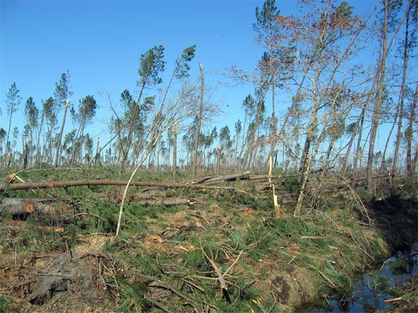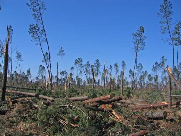sur certaines zones pratiquement tous les arbres ont été coupés ou déracinés.
