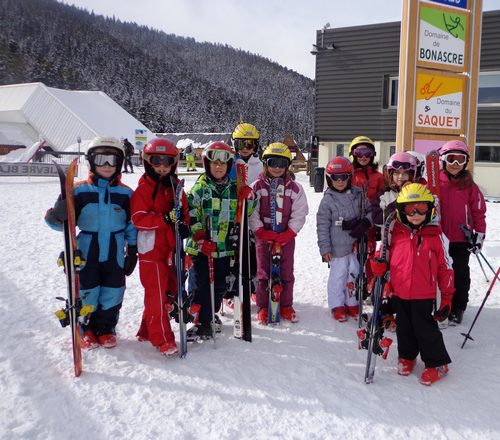 Pour l'équipement: skis, chaussures et casques sont prêtés par les écoles (communes sm6.gif ). 2 ou 3 apportent leur équipement.