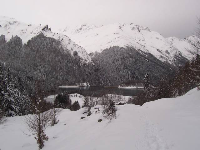 Petite sortie a BIOUS, de la neige a partir de la cabane de la SHEM sur la route de Bious, j'ai chaussé les raquettes a partir de là,il y avait 10 a 15 cm a Bious Oumette et de 20cm dans la derniere montée avant Bious a 45 cm autour de bious et au plateau avant d'attaquer la montée dans le bois pour les lacs d'AYOUS, la neige était très lourde et excuse moi l'expression "j'en ai chié " personne n'était passé