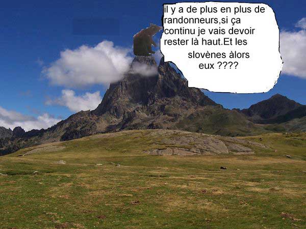 Salut Looping. Pour info et en ce qui me conserne mes relations avec l'ours sont les suivantes: Il y a une dizaine d'années: Entrevu au-dessus dela cabane de Besse, sur l'itinéraire du pic de la Gentiane (Laruns) en vallée d'Ossau. Même époque: Traces fraîches sur la neige en montant au lac d'Er en début de saison (Vallée d'Ossau) En 2004: Au-dessus du village de Fanlo (Espagne, Cayon d'Anisclo) Mois de Mars. Traces récentes sur la neige sur l'itinéraire d'un sommet nommé Comiello. Comme quoi, il y en avait sans que l'on ait besoin des Slovènes!