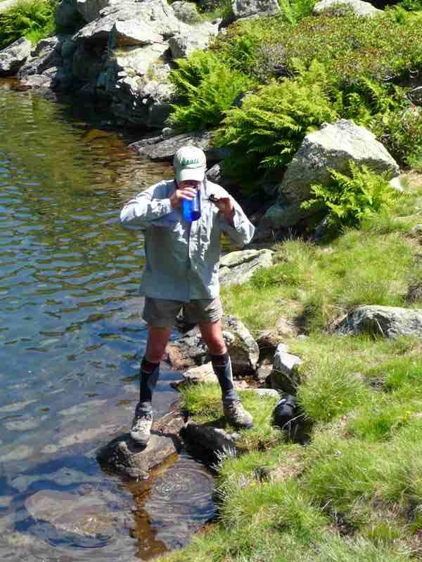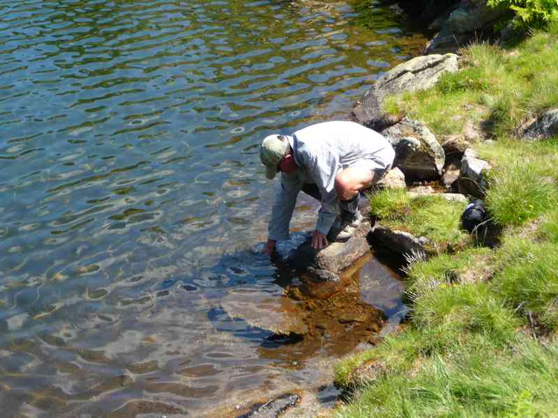 Nous avions bivouaqué au même endroit et une belle fario s’était laissé séduire au pied du rocher, le matin au lever du soleil,parce que après, avec le soleil ...
