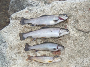 en bas c'est une fario , les autres ont l'air d'avoir des pts blancs ........christy ???? je ne crois pas car vu la tete et la queue ... icon_confused.gif