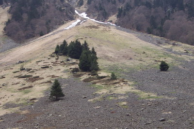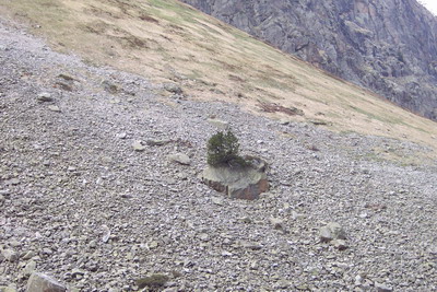 et arbres qui souffrent le dur climat et s'accrochent à la vie en montagne