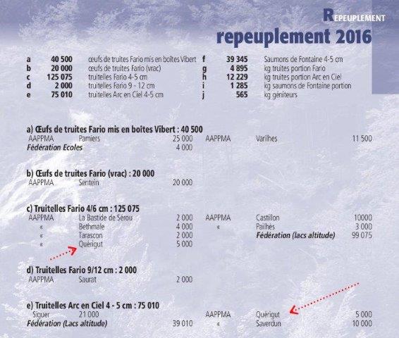 Pour ce que votre fédération s'amuse à vous faire passer : L'extrait du dépliant de 2017, alevinage 2016, je ne l'ai pas inventé...