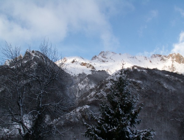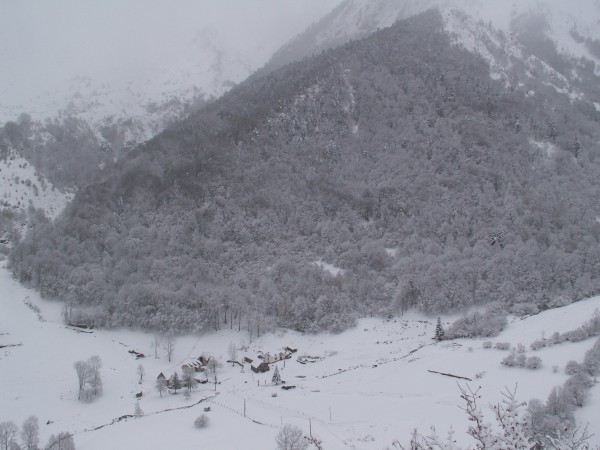 samedi matin, pas encore trop de neige vue vers le pic du midi d'arrens