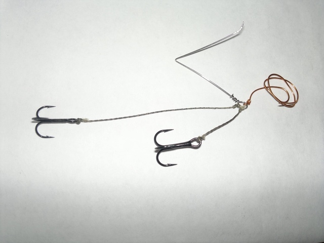 Si besoin on peut ajouter d’autres rondelles (remplacer la rondelle par un boulon) ainsi qu’un deuxieme hameçon de queue.