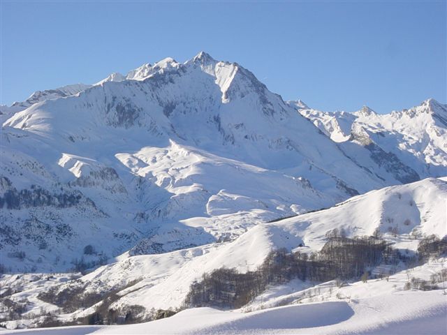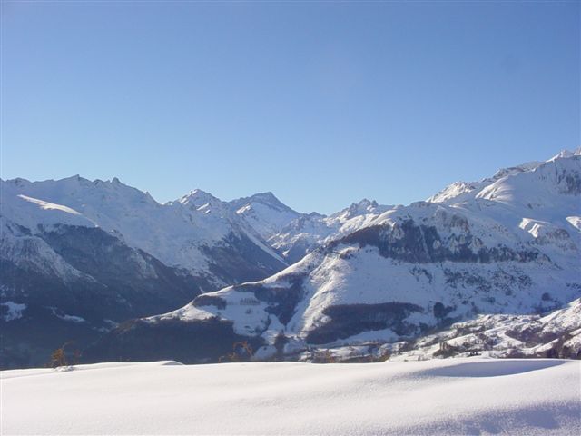 - dimanche aprem: Randonnée au coucher du soleil sur les contreforts du Gabizos en Val d'Azun. Rando toujours aussi impressionnante mais en sécurité. ( J'ai mis une photo du coin prise d'en face par mon épouse qui "raquettait" avec une copine pendant que je skiais ... elle est gentille non ?... ). Neige soufflée mais super agréable à skier. Un véritable frigo ce coin.