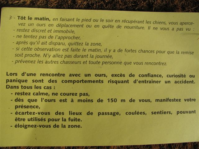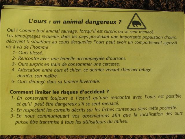 s'il impressionne - à juste titre - le randonneur/pêcheur, il prévient également énormément de dégats, notamment contre les chiens courants, ce qu'il n'aurait pas l'occasion de faire si laprésence de l'ours n'avait pas rendu relativement indispensable sa présence.