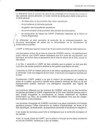 Dans les exemples proposées en séance (présentés comme des possibilités et non des certitudes), elle était même identique. En 2007, ce pourrait être (sur 67 euros chiffre donné en exemple) : 25,8 pour AAPPMA, 13,20 pour fédé, (ces 2 premiers éléments sans changement par rapport à 2005), 18 pour la fédé nationale (FNPPMA à créer) et le reste aux agences de l'eau rénovées.