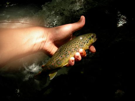 J'arrive donc à me libérer samedi aprém, petit détour par un ruisseau que les Ariégeois du forum connaissent bien (un petit indice : vallée réputée pour ces cépes...). Arrivée au bord de l'eau à 16h30, il fait trés chaud et les eaux sont particuliérement basses. Rien d'exceptionnel pour la pêche. Et pourtant...