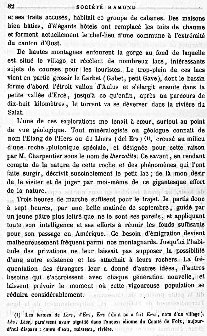étang de l'Hers en Ariège dans un numéro de la Société Ramond de 1874.