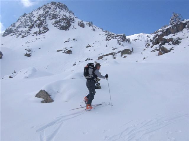 Descente dans une neige finalement bien agréable, fraiche un peu lourde mais compacte et portante.