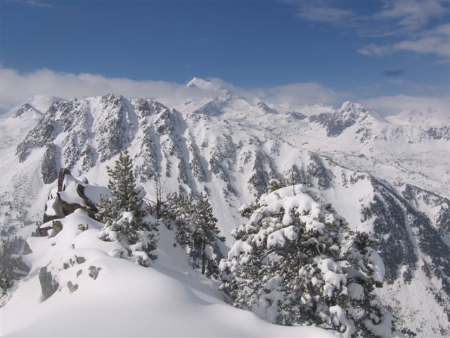 vue du sommet sur le massif du Néouvielle ( les lacs de le zone d' aygues cluse sont encore enneigés )