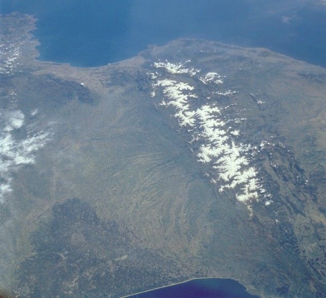 On voit trés bien la dense forêt des Landes et aussi les plissements nord-pyrénéen des contreforts du massif tout le long du relief mais coté nord (français).