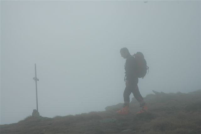 Embarrat via le col de la haugade et, dans une ambiance mi soleil mi brouillard, je vois un prètre en train de célébrer une messe sur un gros rocher, avec devant lui 5 ou 6 personnes.