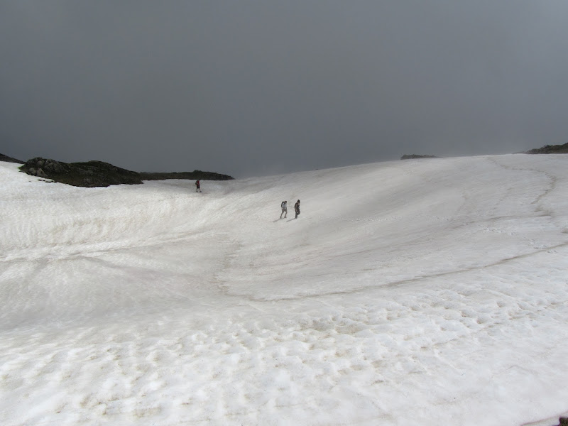 Encore beaucoup de neige aux abords du raide col de Craberous