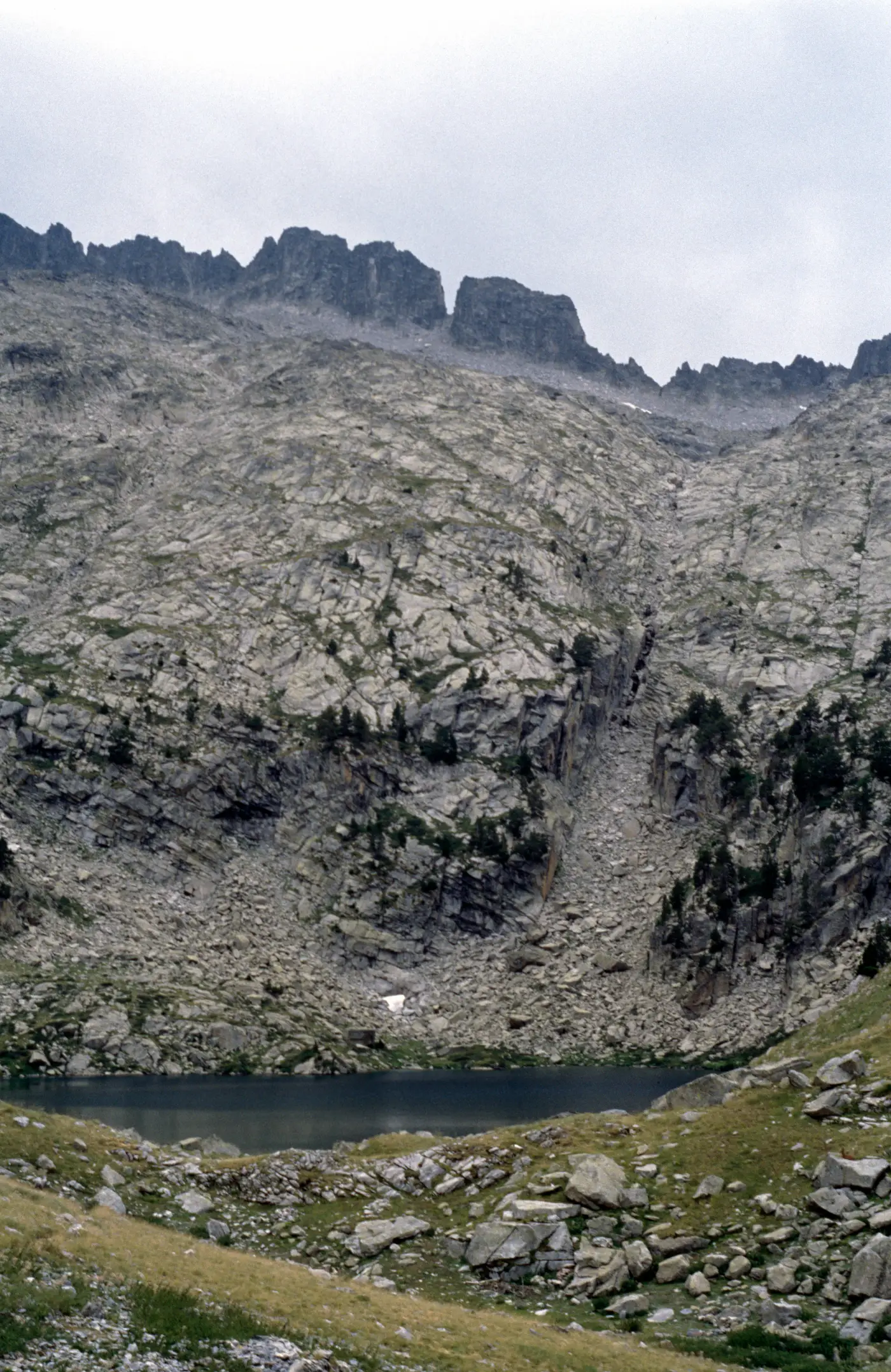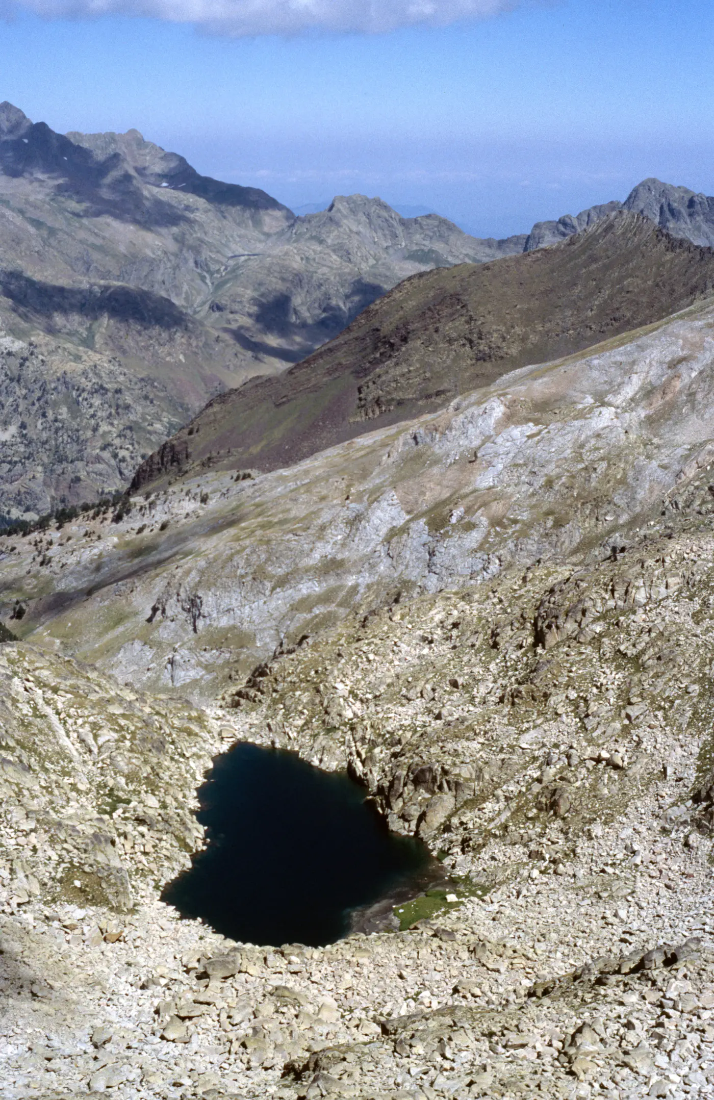 Ibón Superior de Alba (2450 m) desde cresta junto a Brecha de Alba (2640 m)